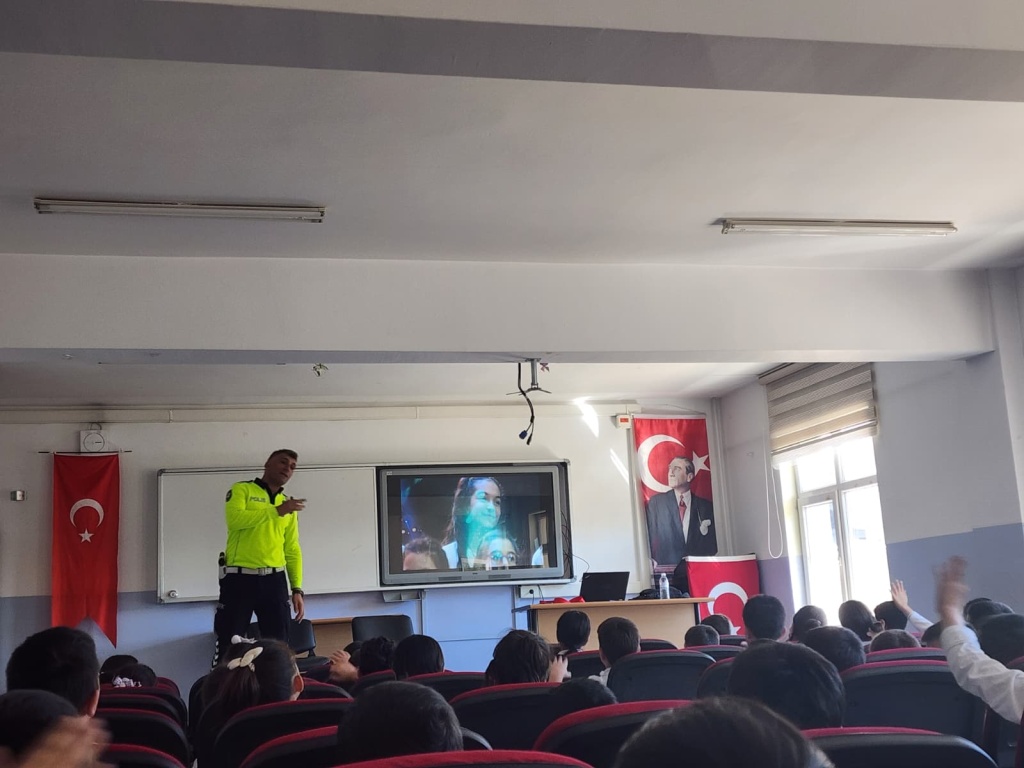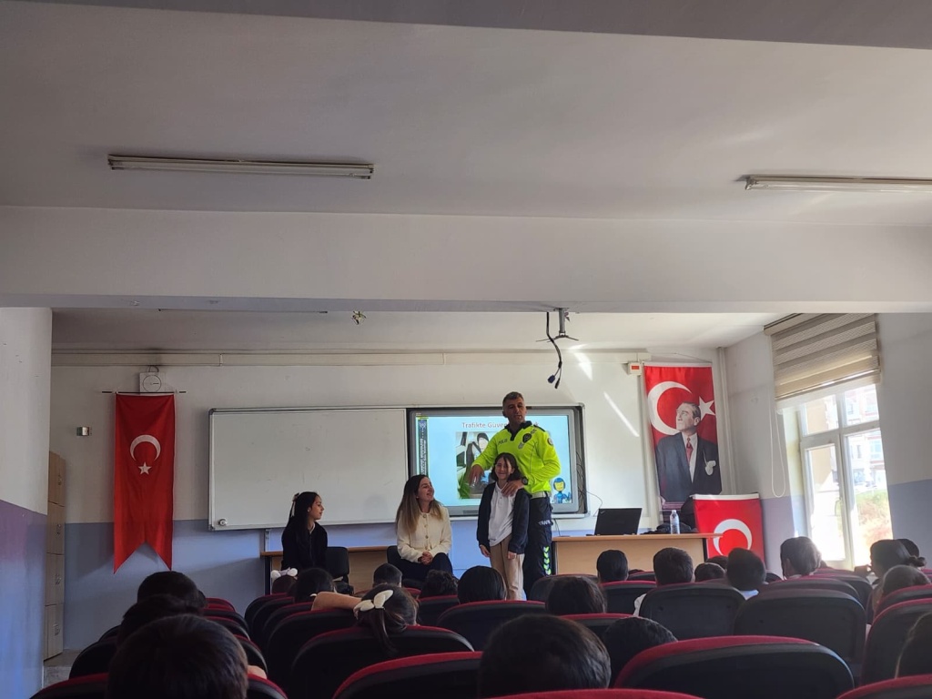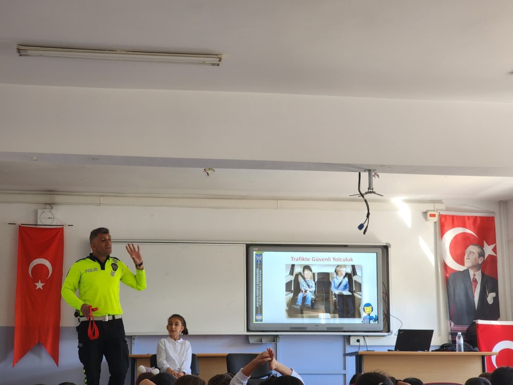 Trafik Denetleme Şube Müdürlüğü tarafından okulumuz 5. sınıf öğrencilerine "Trafikte Yaya ve Yolcu Güvenliği" konulu eğitim verilmiştir. Eğitim süresince çeşitli uygulamalar yapılarak öğretilenlerin kalıcı olması hedeflenmiştir. Şube müdürlüğüne ve polis memurumuza teşekkür ederiz.